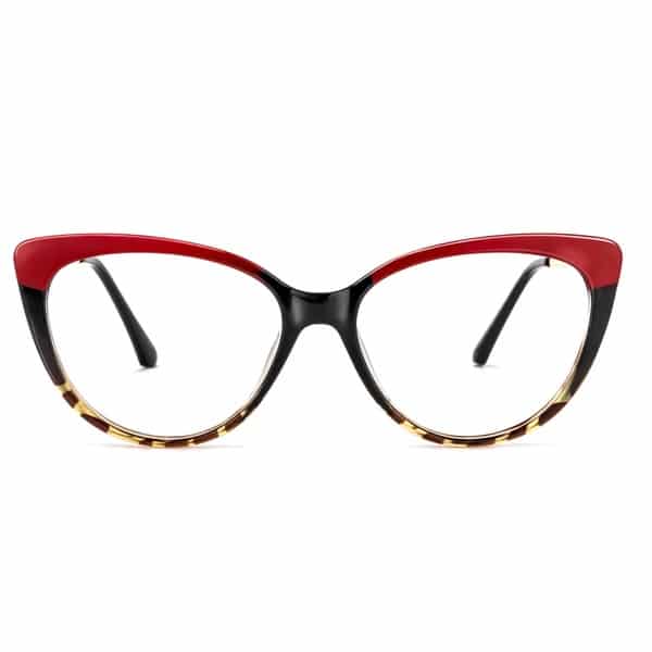 The Trudie – Cat Eye Red Tortoise Eyeglasses radiate “bad bitch energy.” These glasses are ideal for intimidating your friends, family, or colleagues. They feature a cat-eye frame, a red eyeliner rim, and a light tortoiseshell shade on the lower edge. The black coating ties these two colors together and gives the glasses a touch of sex appeal.