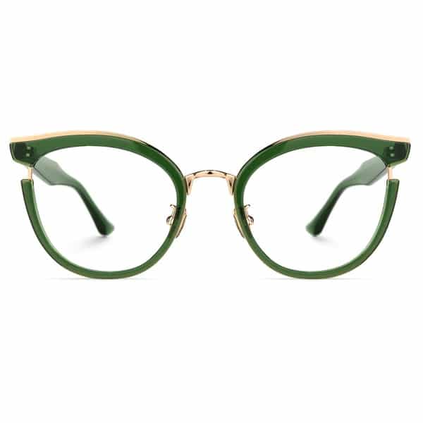 These semi-transparent glasses with a hint of gold captivate with their romantic design. Their bright green hue is reminiscent of old emeralds, gentle spring hills, and the anticipation of summer. If anything, they are the literal definition of “rose-colored glasses.”